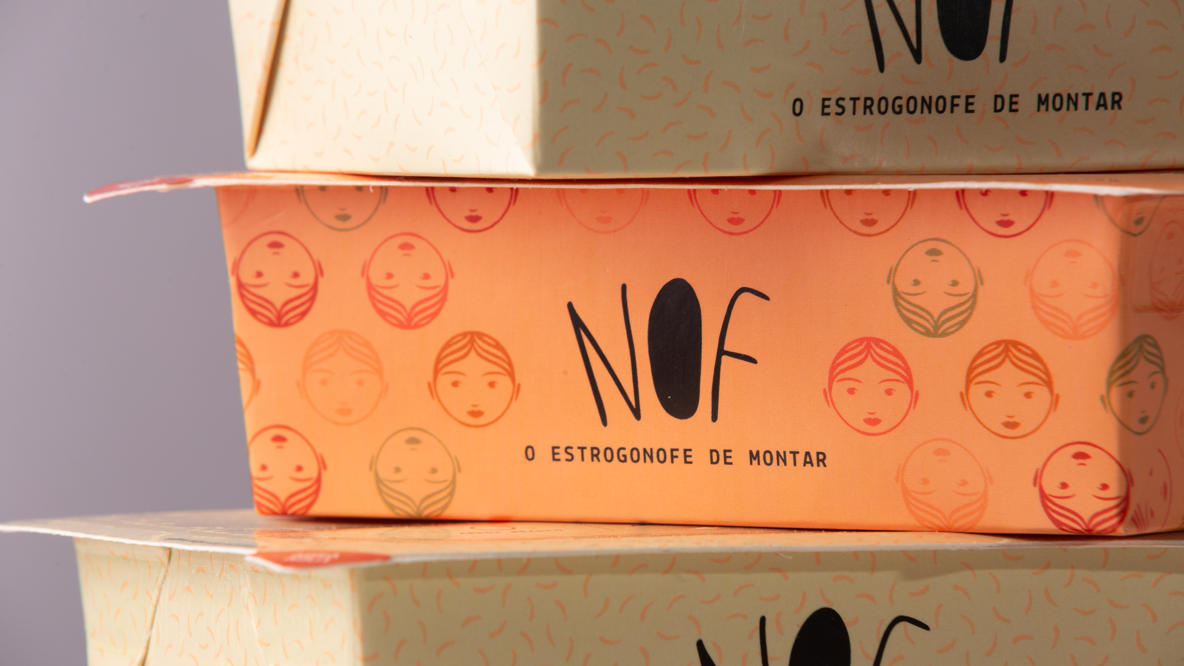 Logotipo, identidade e embalagens para a marca de estrogonofes NOF